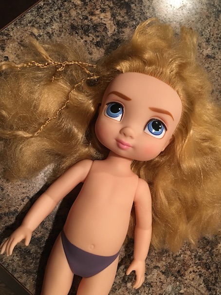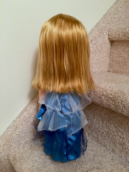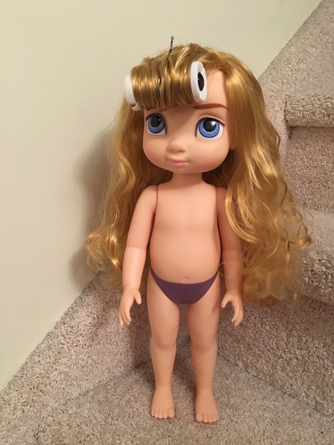 What a difference!! I took the roller out of the other doll’s hair too. Although they are the exact same doll, you can see the difference in hair length.