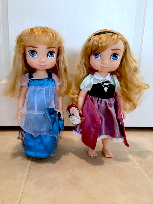 Anyway, aren’t they a mess? Upon closer inspection, it can be found that in reality, these are both the exact same doll–the Disney Animators version of Aurora.