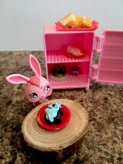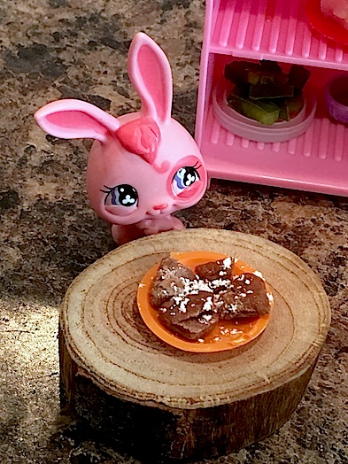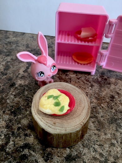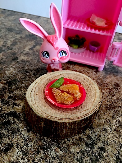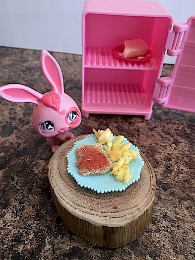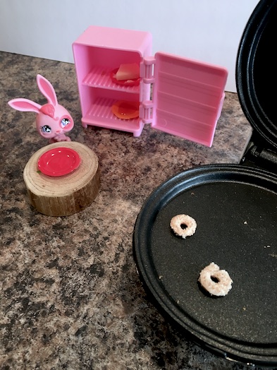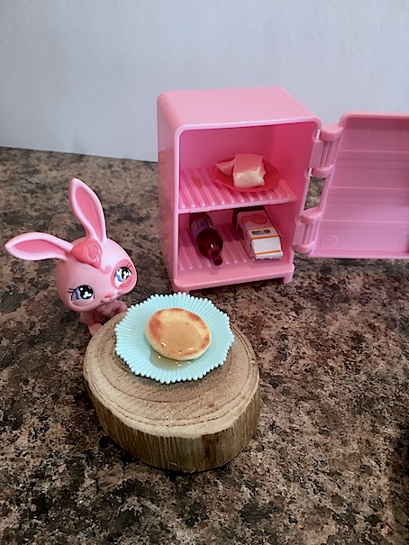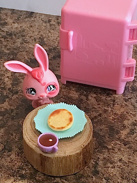 The first order is up! Pink bunny is having a mini pancake with butter and syrup!