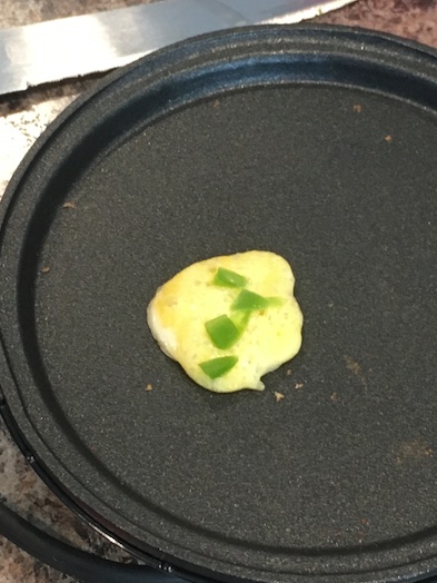 If you would like to have a mini omelette instead, just chop up some green or red peppers, onions or anything that you like.