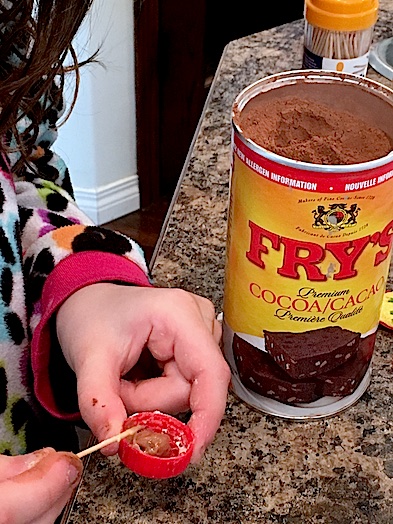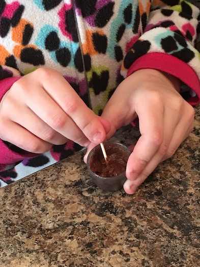 What’s next? The possibilities are endless really. We used some cocoa powder, flour, milk and sugar to mix up some chocolate cookie batter in a soda pop lid.