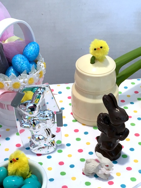 The little fuzzy chicks are so cute! 🙂 We got them from the dollar store too, along with the little white bunnies.
