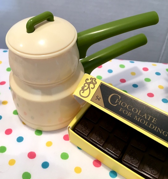 The chocolate bars don’t fit in the top of the double broiler, but they do fit in the bottom. I thought that this was a bit odd, but the play value is still huge with this set. The Little Miss has been pretending to make chocolates for her dolls all afternoon.
