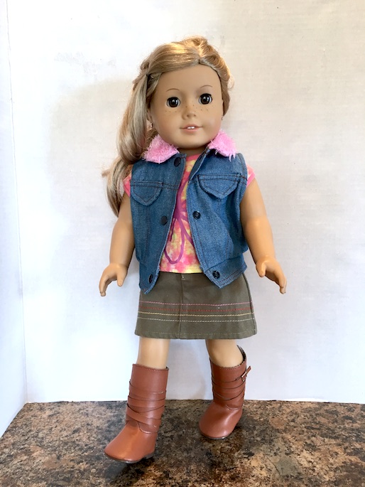 Great doll find!! She’s beautiful!! I do not have Tenney, but I am using my Caroline doll as Tenney. She at this time does not have freckles and her eyes are blue, not brown. I just finished sewing Tenneys Spotlight outfit. I made it a little longer so that when she sits down, her undies don’t show. I am also crafting her boots and headband, banjo , guitar ,etc.. I just used what I had at home. It won’t be exactly the same, but it sure saved me a lot of money!