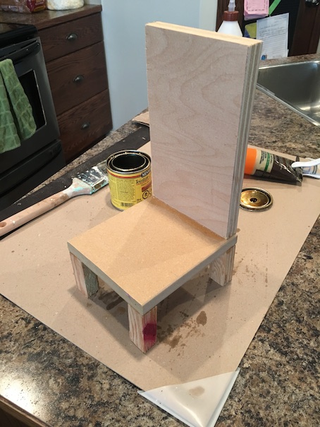 Note: If I had another piece of plywood on hand, then I would have just built the chairs entirely out of plywood, and used finishing nails along with the wood glue to keep it together.