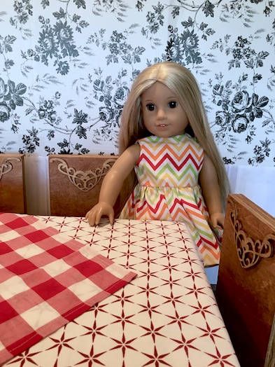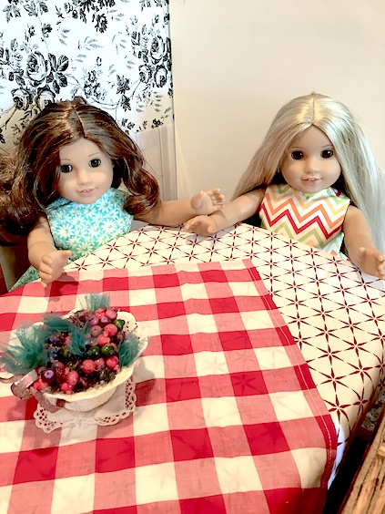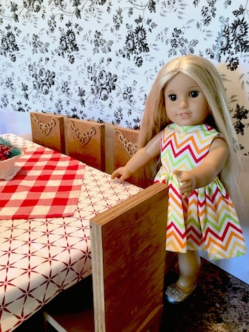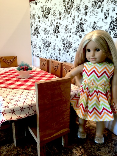 Nice job! I like the challenge of making something using what you have on hand to go along with a thrift store find. I can picture the holiday dinners in the doll’s future 🙂
