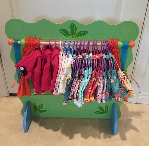 It was pretty full, but that was okay because we took some of the dresses down to put on the dolls, and to lay out on the table.