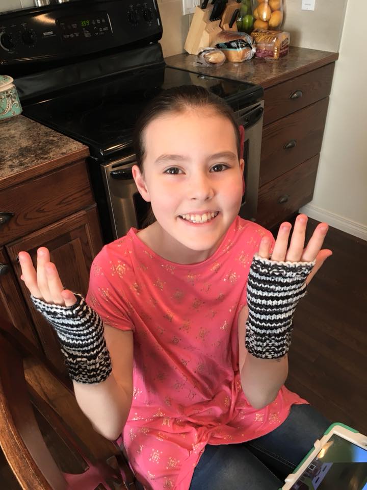We also received two pairs of lovely knit fingerless gloves, girl sized this time. 🙂