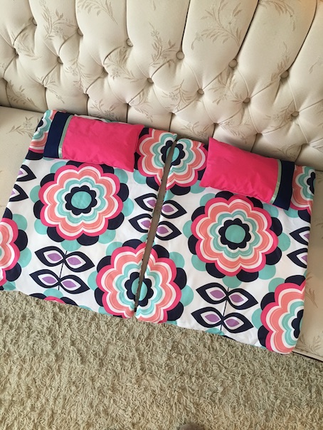 At the last minute we decided that we should add in some dolly bedding too. We were gifting for a little girl the same age as the Little Miss, so she was helping me decide what to make. She insisted on doll bedding. I always have leftover materials from similar projects, so it didn’t cost a lot extra. Most of my budget goes to shipping for these exchanges anyway, so I always try to use what we already have on hand.
