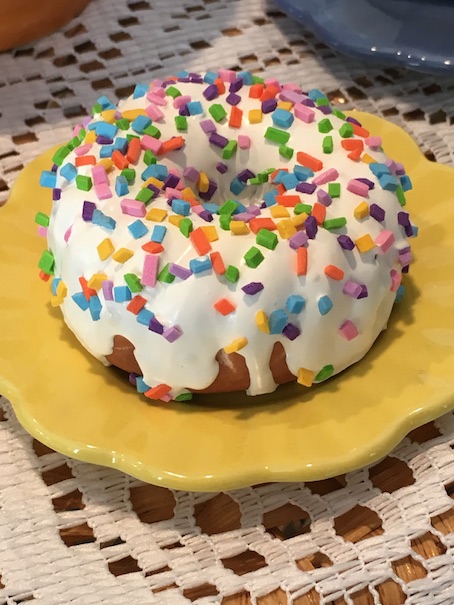 Here is the rainbow bit pound cake.