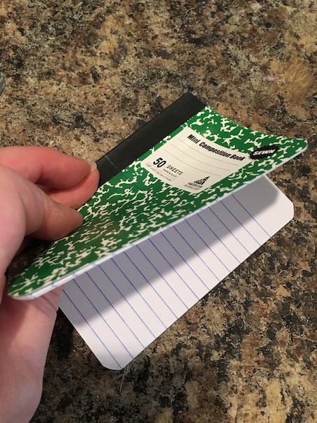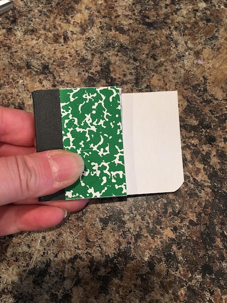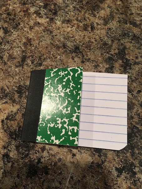 The first thing you need are some of these little composition books. I think they are so cute and mini already, but they are just way too big for the dolls! We got ours from the dollar store. They come three in a package.