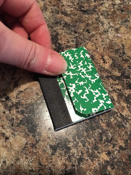 This is what you should be left with. That is the front flap of your notebook. Fold it over.