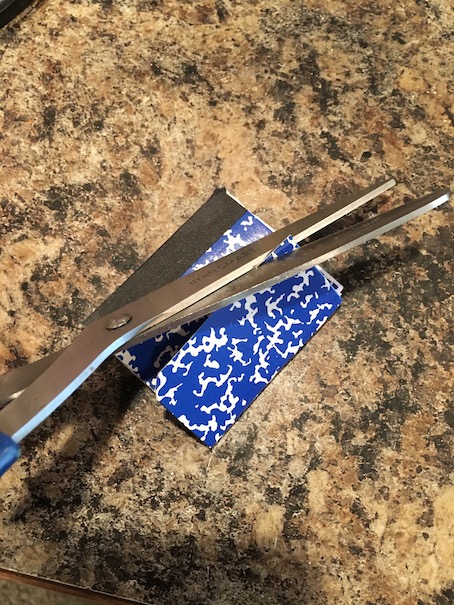 And your next, and so on until you have cut through all of the papers and the back cover too. Now you will be left with two portions that are hanging on by a thread.