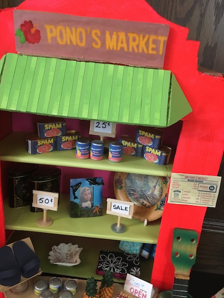 Here we have the main shelf of the market complete with little bags of rice and enough spam to last a dolly lifetime! 🙂 The items on the middle shelf were just some thrifty finds I added in there that we already had on hand.