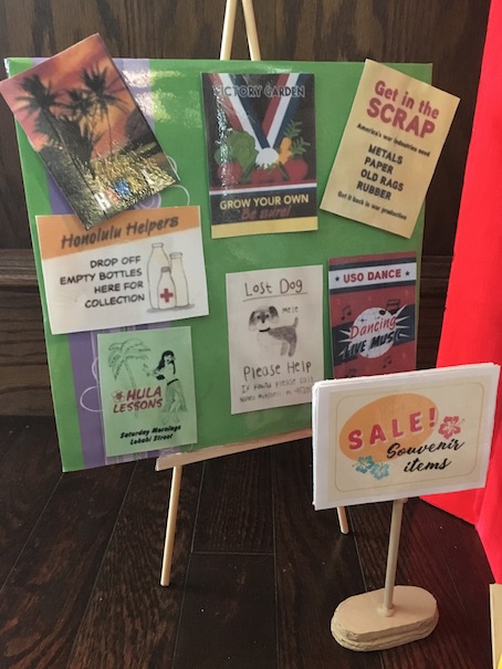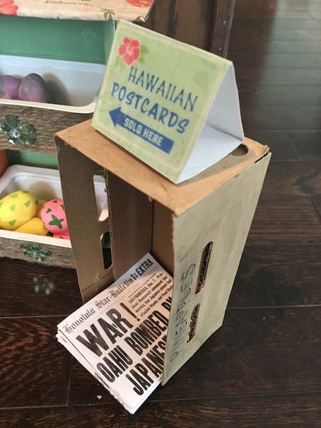 This is the pineapple crate with four copies of the Honolulu Star Bulletin of the times.