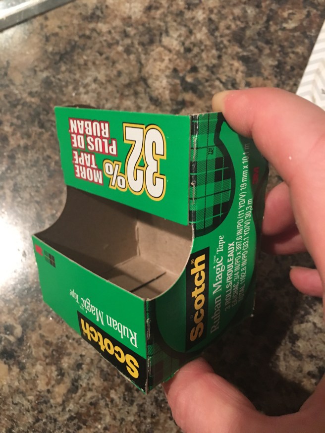 1. I usually have one of these little boxes hanging around. I’m always staring at them trying to find new uses for them. lol 🙂 I think they might make a cute doll magazine holder too, but I am definitely going to try to make one into a typewriter next. ❤ I love recycling. 🙂
