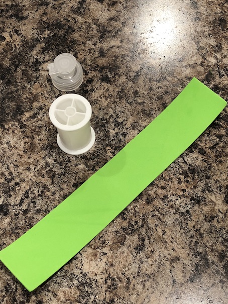 Hot glue the dish soap lid to the top of the spool. Then trace and cut out a circle of craft foam to glue to the bottom of the spool.