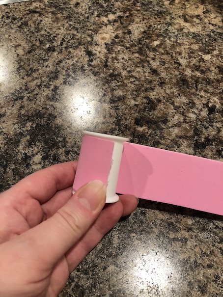 See that seam where the craft foam folds over on itself? We are going to cover that up with ribbon. I used grosgrain ribbon, the kind with the little lines on it.