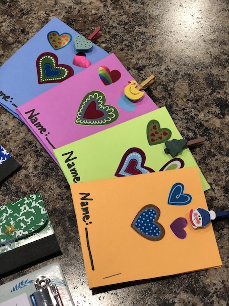We also made some doll folders out of card stock, and decorated them with stickers. The pencils are painted wood skewers cut to size, and our doll binder notebook tutorial can be found HERE.
