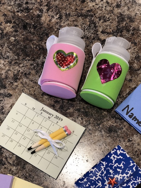 Besides sewing gifts, we also made this cute doll school set for my niece’s birthday. Now most of this set can be created using items that we found at our local dollar store. We found a mini calendar, some mini notepads that we cut to size, and a darling mini clipboard.