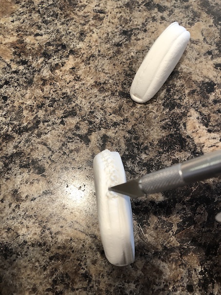 Step Five: Next, use your sharp tool to poke, and pull out some texture in between the two lines that you just drew.