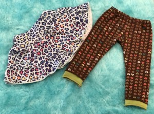 Of course, t-shirts and long sleeved shirts are a must for every modern girl’s wardrobe. I also used the Piccadilly Sweater pattern by Liberty Jane to make some cute lace embellished sweat shirts. This was my second attempt at making these, so the Little Miss has the same ones.