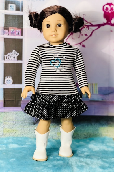 1. So busy! ❤ I love the overlay sweaters too! I only have one word of caution about that pattern, and that is if your fabric doesn't have enough stretch, it is difficult to get the sleeve past the doll hands. I had to make some adjustments because my fabric was just plain sweatshirt material, and didn't have a lot of stretch. I definitely love the results though! 🙂