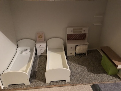 Once I had an idea of what direction I wanted to go, it was time to decide which room in the dollhouse that we were going to work on first. I suggested that we go with the first room that we built.