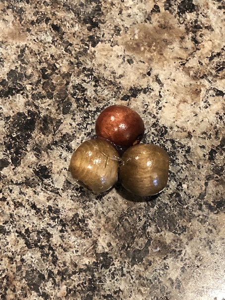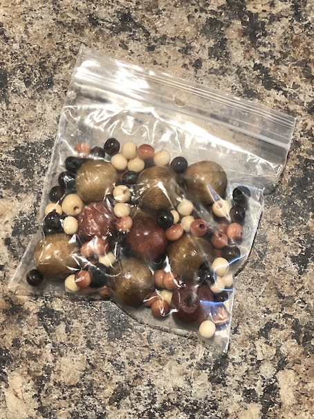 Wooden beads, paint, hot glue, thick craft foam, white puffy paint