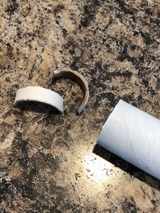 Paint the paper plate surface of your tray silver. To make a handle for your dome, cut a small piece of cardboard tube. I used the tube from inside the aluminum foil.