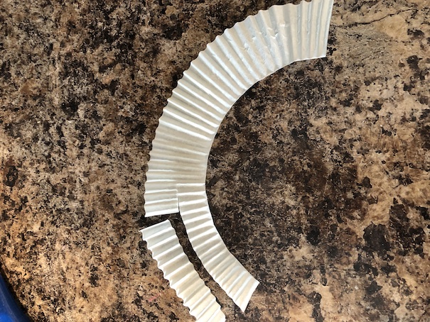 Next, cut a piece of the muffin liner. Wrap the muffin liner around the end of the pipe cleaner.