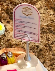 I found a picture of the AG room service menu online, and printed it onto card stock paper. Then I laminated it with clear tape. I used a golf tee for the menu stand, and attached a paper clip at the top to hold the menu in place. I painted the golf tee silver and hot glued a large button to the bottom.