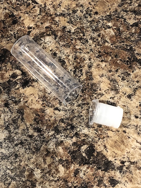 Here is the piece that you need. If you don’t have this piece, or you don’t have a foaming soap dispenser, a piece of straw or a dowel secured to the top of a button will work just as well.