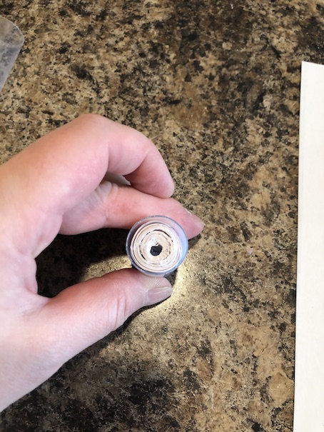Roll, and roll, and roll your paper using the glue stick to secure it as you go. The picture above is where we realized that now we were going to have to trim the top off of that thick roll of paper. Oops! 😛 Oh well, crafting fun, and lessons learned! At least you guys get to learn from our silly mistakes!