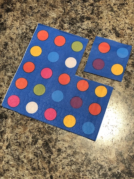 These were easy, we just cut the corners from some party napkins that we had. Be sure that you cut off the folded corner, not the open corner.