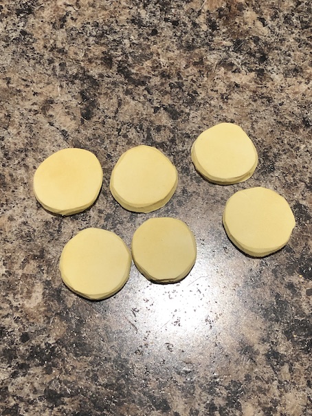 We cut some large circles from thick craft foam. We used yellow chalk to colour them, but you can use paint as well.