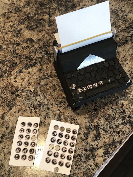 Typewriter letter keys printed from online (we just googled typewriter keyboard, picked an image, and printed it out at a size that would fit)
