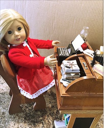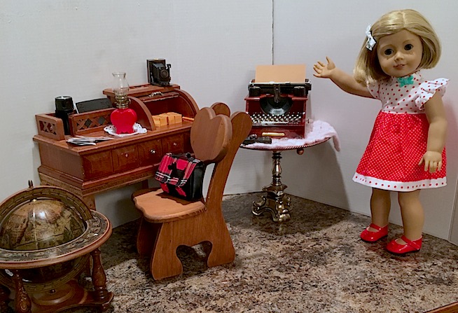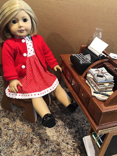 So it was obvious that I would fall in love with our resident doll writer, Kit Kittredge, and that she would eventually become one of my absolute faves. She even has a special little doll corner in the doll house where she can sit and dream, and write her stories all day long. The only thing that she was missing was her typewriter.