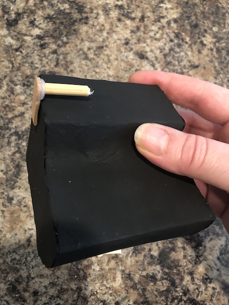 (We clearly did this wrong the first time around. We didn’t attach the elastic so we had to remove one of the popsicle stick arms to do so. Lesson learned, but good news for you! Attach the elastic on there first!)