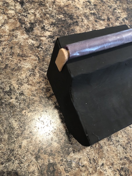 Hot glue one of these pieces to the side of your typewriter like this: