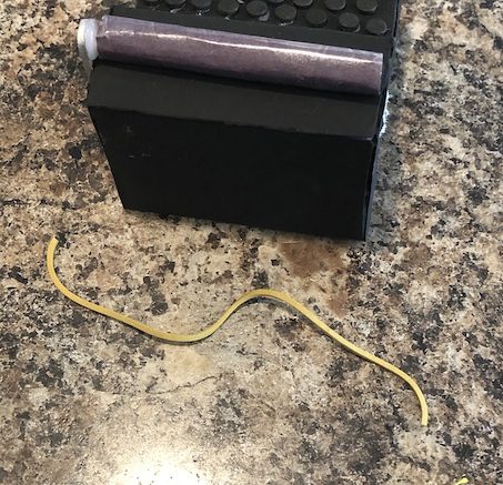 Next take your elastic band, and cut it.