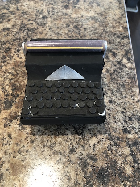 Next, cut a triangle piece from card stock and hot glue it on the front of the typewriter.