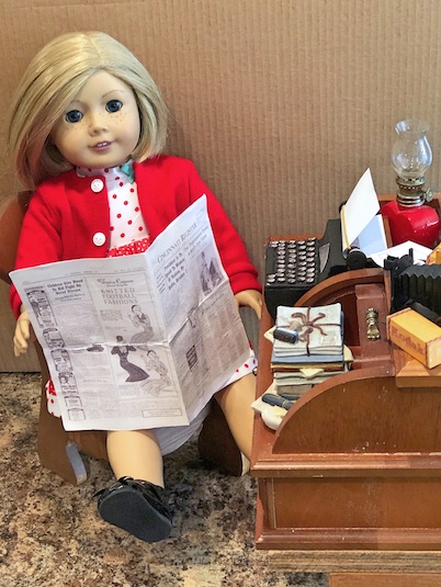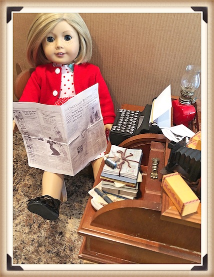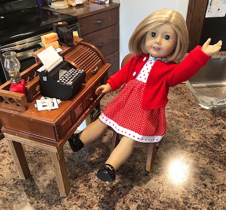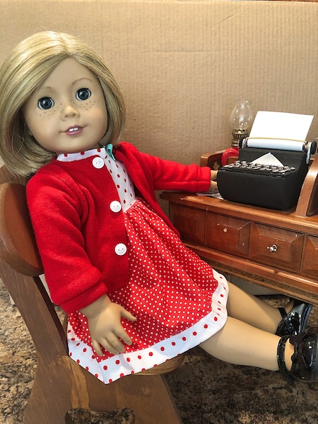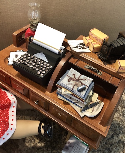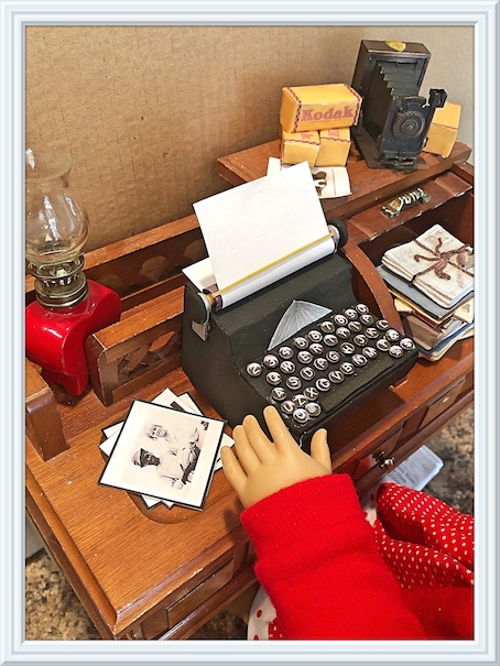 So it was obvious that I would fall in love with our resident doll writer, Kit Kittredge, and that she would eventually become one of my absolute faves. She even has a special little doll corner in the doll house where she can sit and dream, and write her stories all day long. The only thing that she was missing was her typewriter.