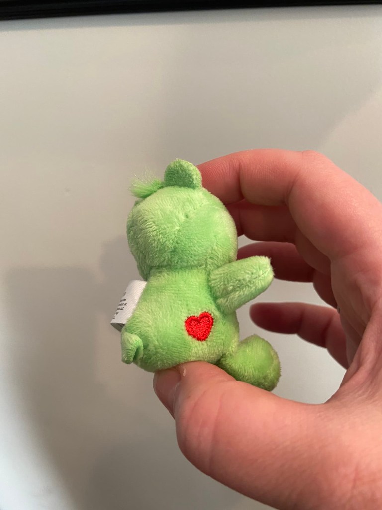 Okay, onto the cons and really there aren’t much. The number one con was that big huge tag sticking out the back of the bear but that could be trimmed off. The backpack zipper pull Carebears also have a big tag, so not a deal breaker by any means.