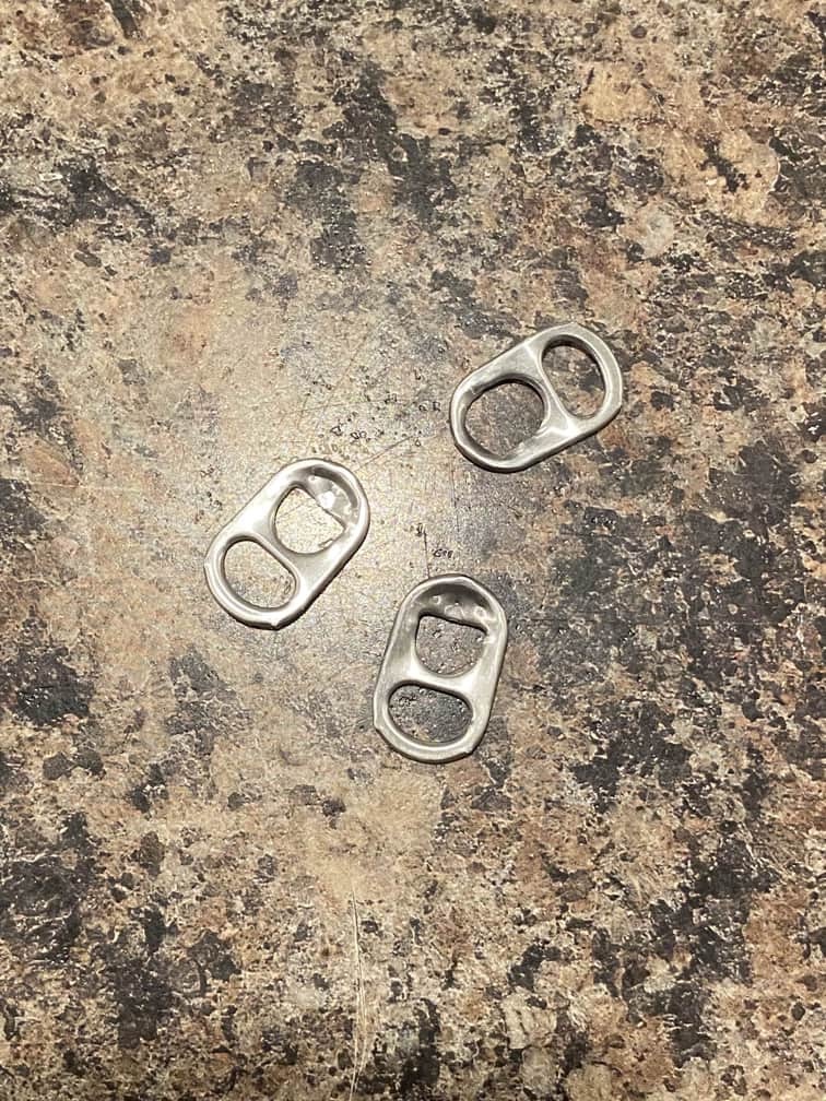 First, hot glue one of your pop can tabs to another in a V formation as shown.