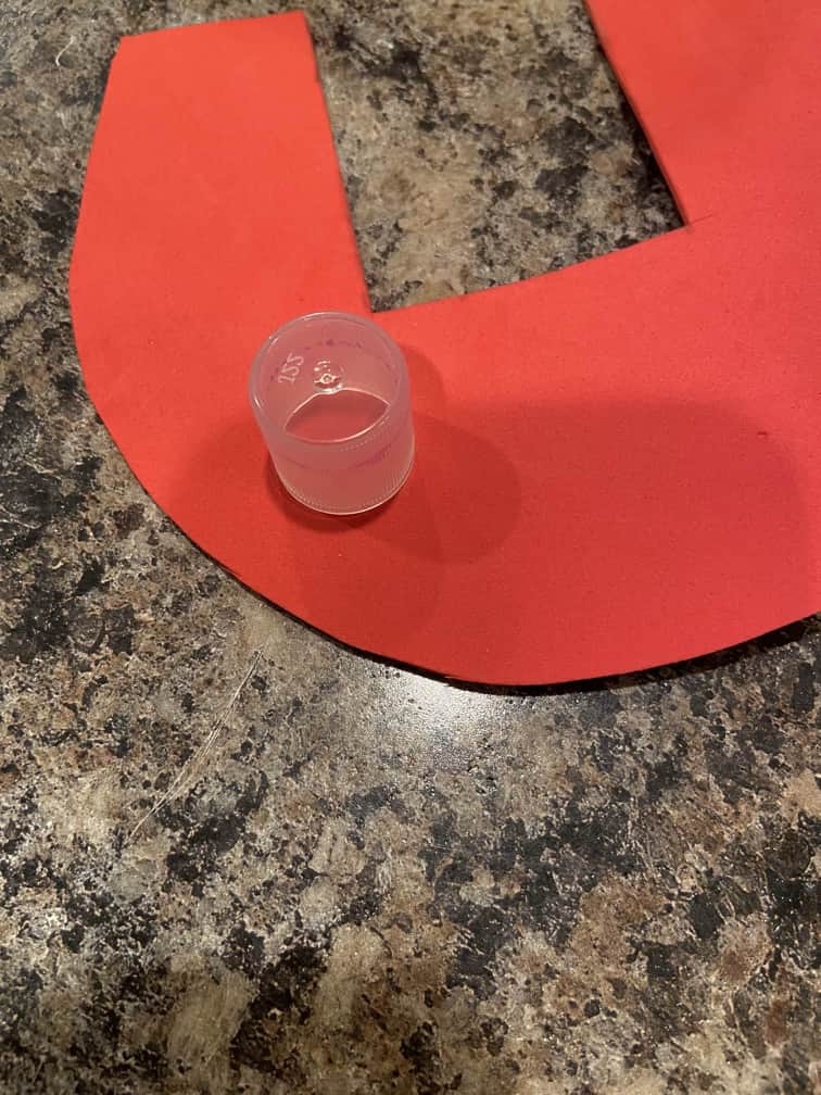 Now cut two circles from craft foam. We used the lid from a glue stick to press into the foam but it doesn’t have to be perfect. Our circles had to be trimmed down to size anyway.