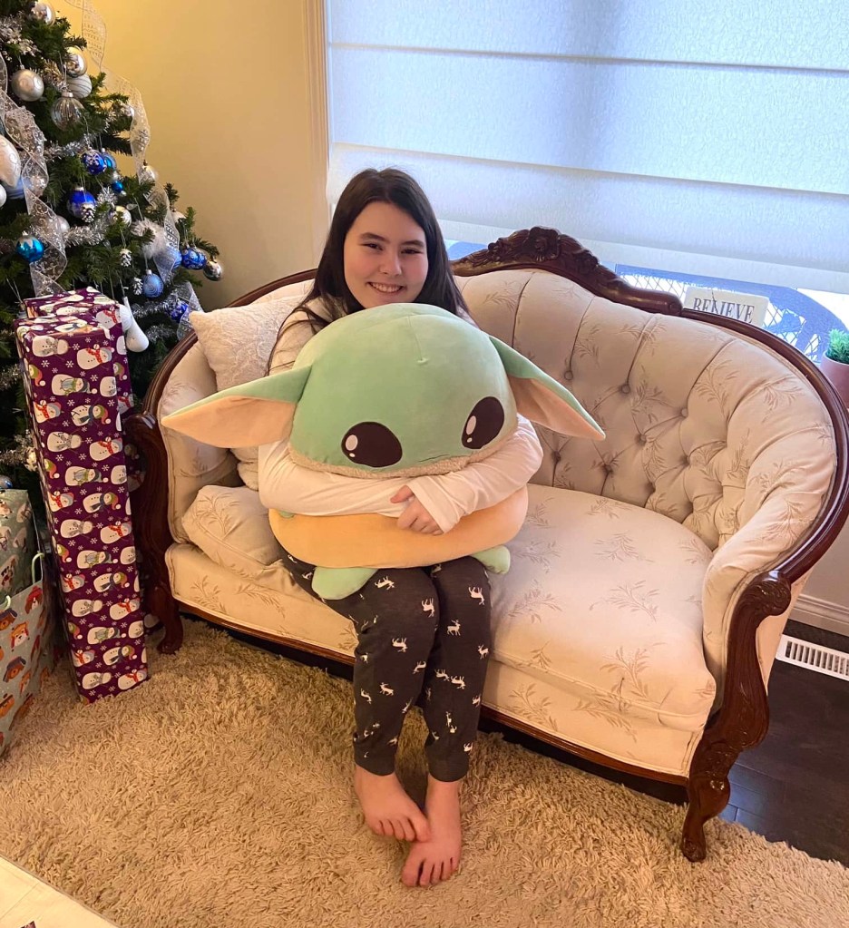 The Little Miss’ favourite gift was a giant Baby Yoda Squishmallow.