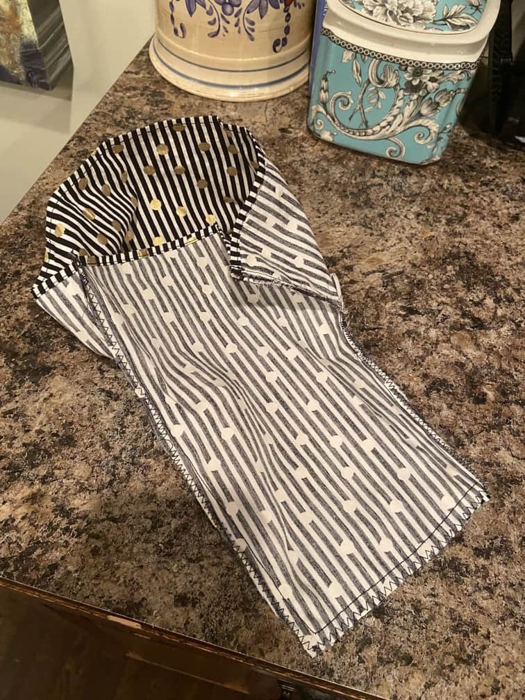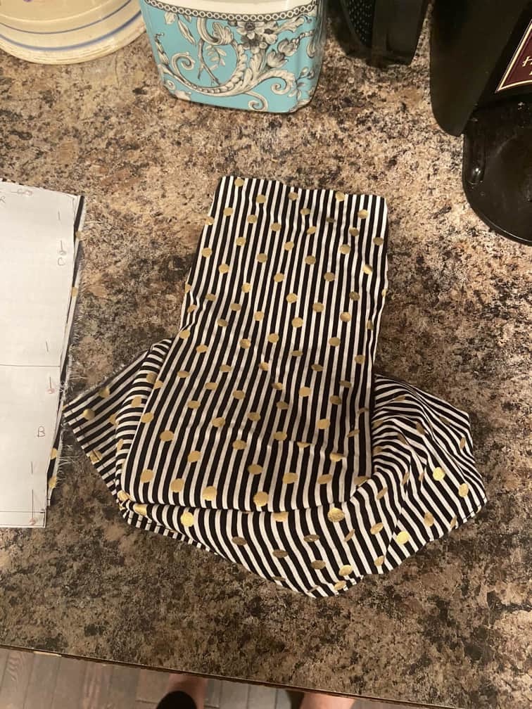 Finally, hem the bottom edge of your chair cover measuring on your chair so that it isn’t too short or too long.