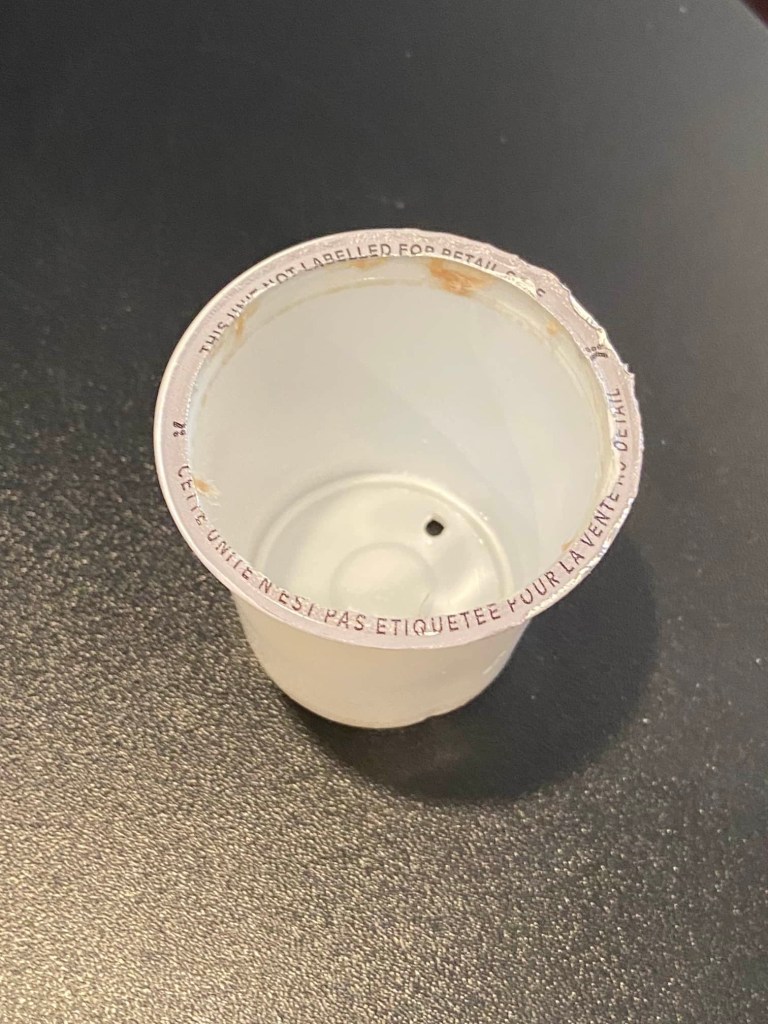 First, empty and clean out your coffee pods. Some plants love coffee grounds so you can even reuse them by sprinkling them on the soil if you like.