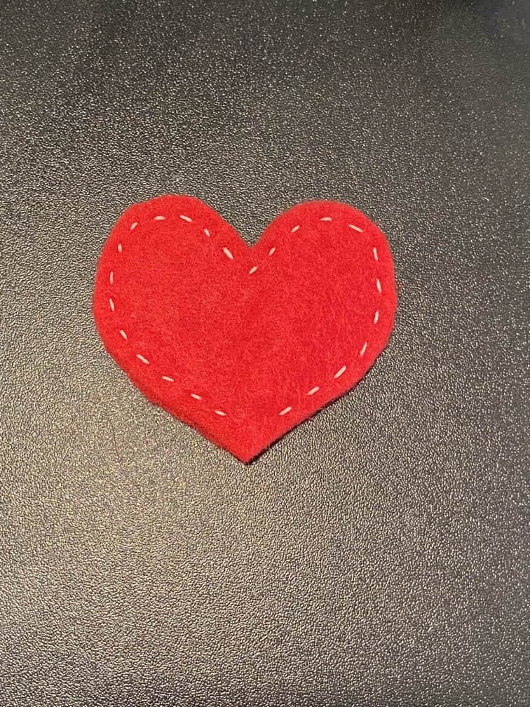 Cut two hearts from red felt. Stitch or hot glue together leaving an opening at the bottom for the dowel to fit through.